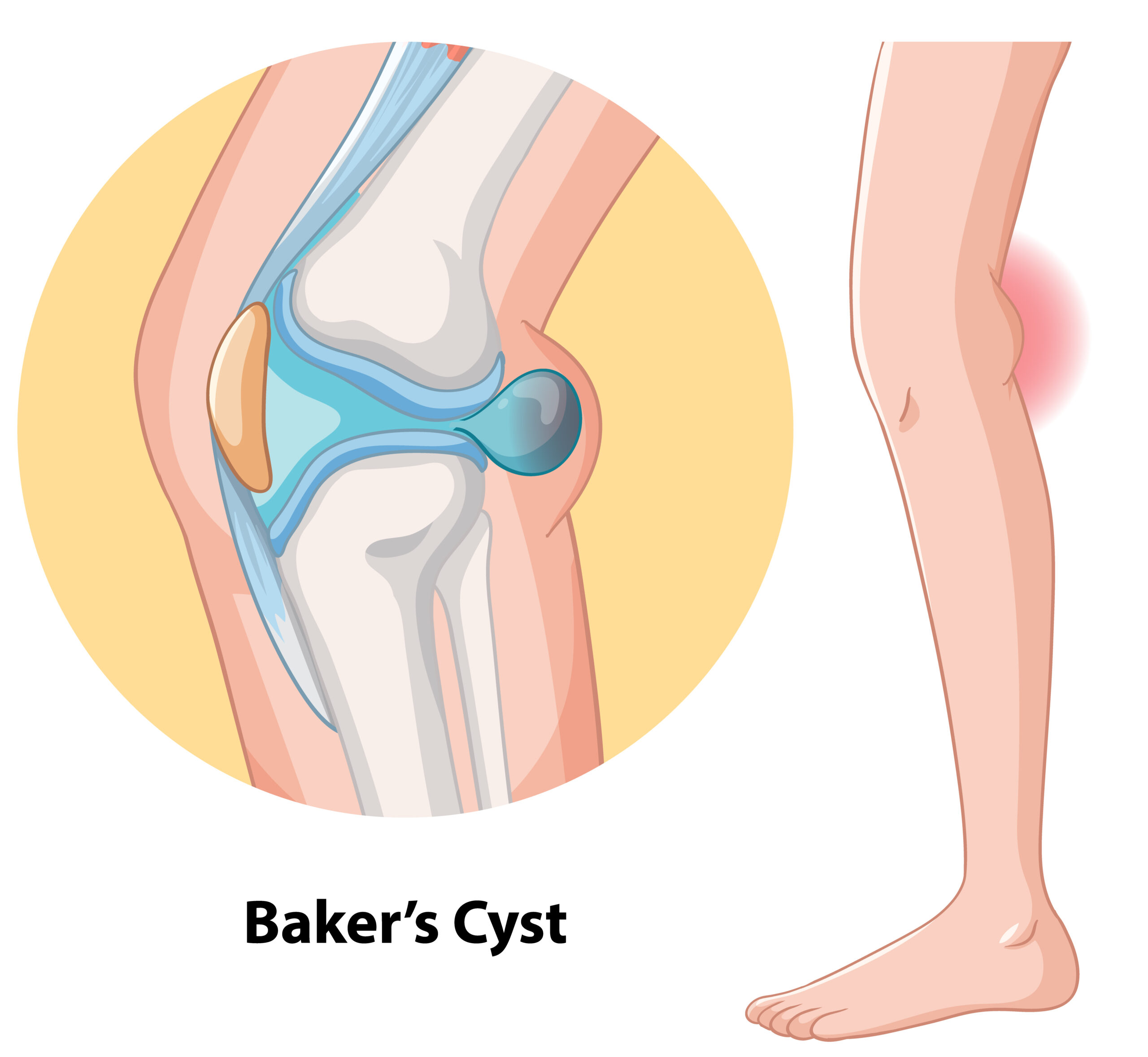 What is a Baker’s Cyst? Baker’s Cyst is a fluid-filled swelling that forms behind the knee. It is also called a popliteal cyst. Often, this